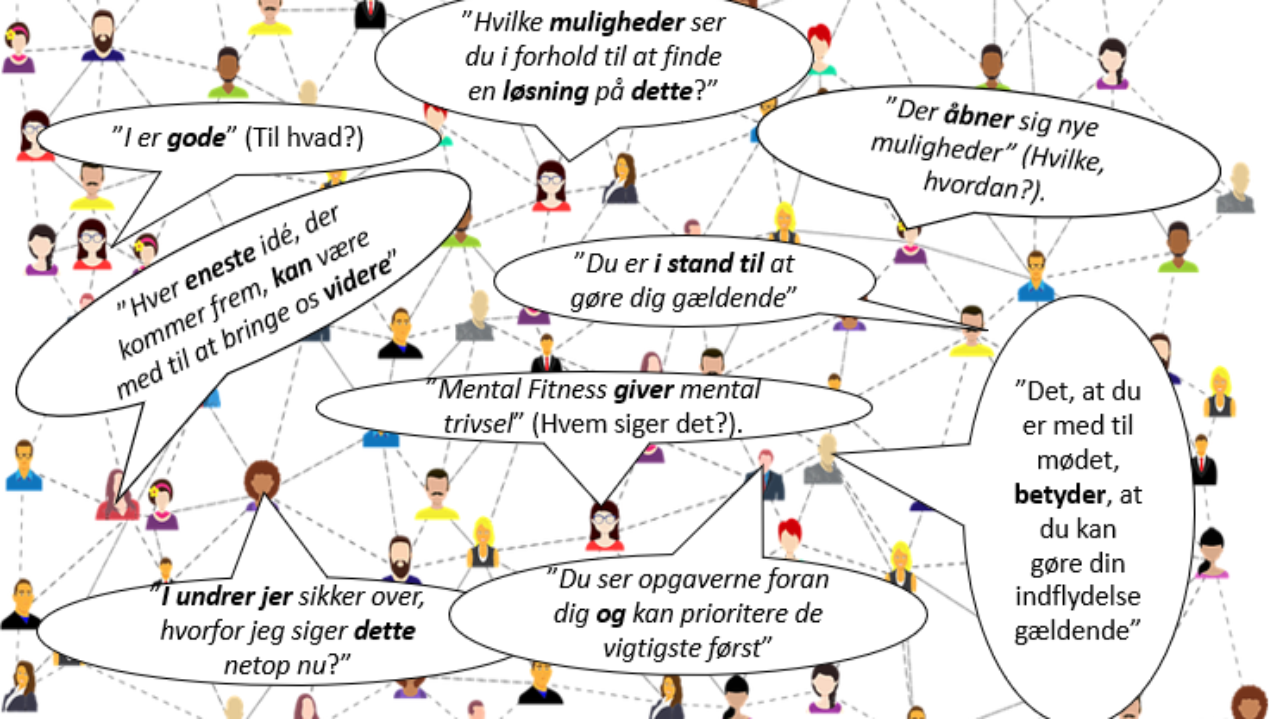 Ved bevidst at udelade bestemte ord eller forhold i dit sprog, kan du vække modtagerens nysgerrighed og motivere til tænkning og handling – at sætte det manglende ord/begreb ind. Det kan både være udeladte ord, anvendelsen af nominaliseringer og uspecifikke verber: Fx ”I er gode” (Til hvad?), ”Hvilke muligheder ser du i forhold til at finde en løsning på dette?” og ”Der åbner sig nye muligheder” (Hvilke, hvordan?).